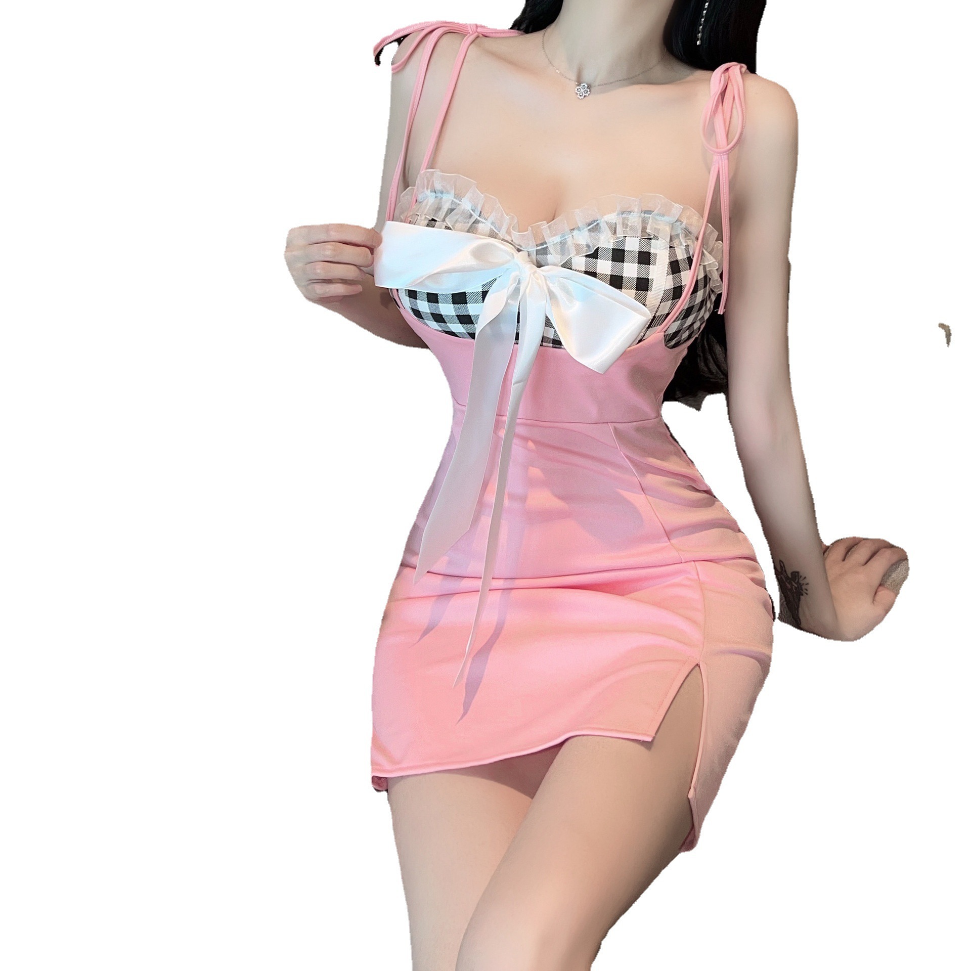 - Classic Design: Features a timeless gingham plaid pattern on the bust, accented with a stylish white bow and soft lace trimming.