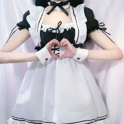 ★MoteruStyle!Coldker Women Maid Outfit Anime Long Dress Black and White Apron Dress Lolita Dresses Cosplay Costume